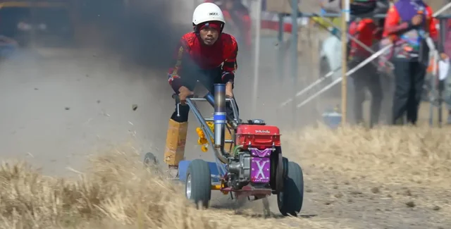 В Таиланде регулярно проводят такие необычные гонки. В них фермеры превращают мотоблоки в гоночные болиды, которыми нужно управлять стоя. Это выглядит довольно зрелищно.