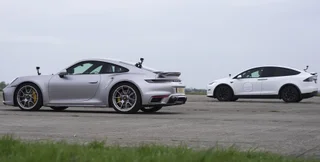 Блогеры устроили драг-рейсинг между спорткаром Porsche 911 Turbo S и электрокроссовером Tesla Model X Plaid. Несмотря на разницу в классе, оба автомобиля оказались достойными соперниками. Видео опубликовали на YouTube-канале Carwow.