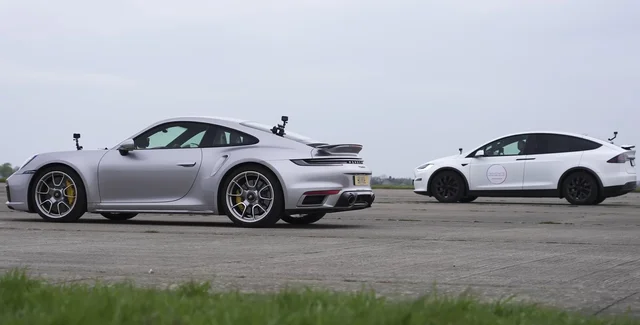 Porsche 911 Turbo S является самой быстрой модификацией спорткара на прямой. Тем не менее топовая версия Tesla Model X Plaid также может похвастаться впечатляющей динамикой разгона.