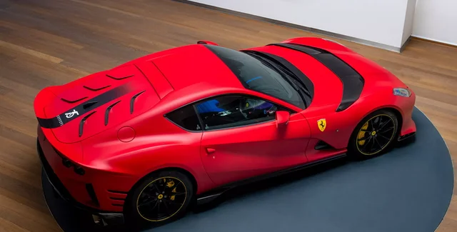 Этот Ferrari 812 Competizione окрашен в уникальный матовый цвет Rosso F1-75. Он вдохновлен болидами "Формулы-1" 2022 года.