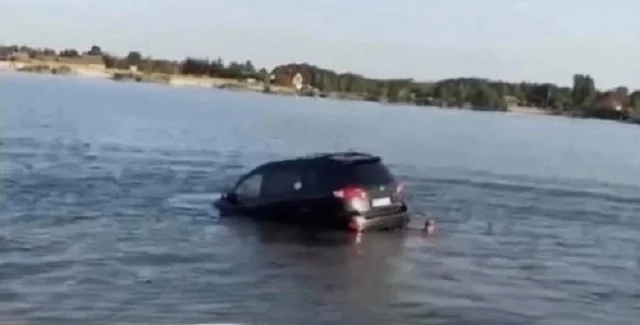 Не рассчитали: в Украине отдыхающие случайно утопили в озере кроссовер Hyundai (видео)