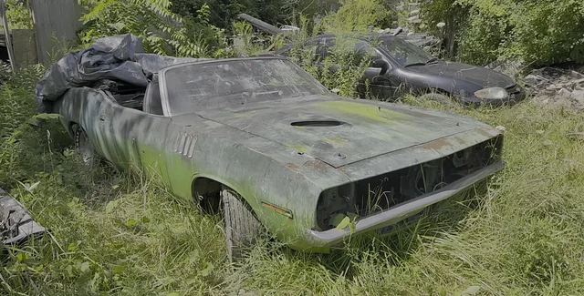 Plymouth Barracuda в кузове кабриолет особенно ценится среди коллекционеров. Этот экземпляр находится в ужасном состоянии, но владелец планирует его восстановить.