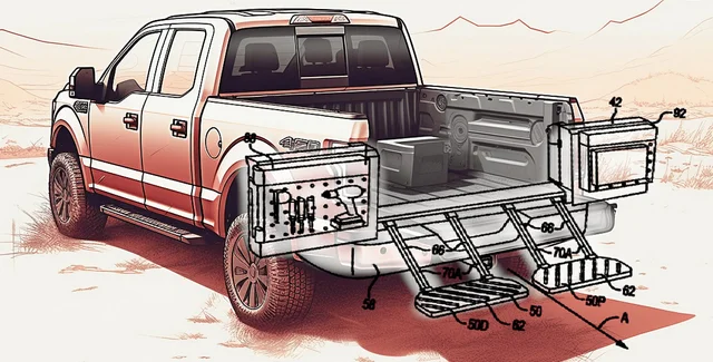 Патент был подан в Немецкое ведомство по патентам и товарным знакам. В заявке Ford описан метод увеличения длины грузовой платформы пикапа, а также скрытый отсек в задних дверях.