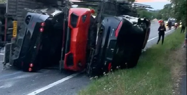 ДТП на $2 миллиона: в аварию попал автовоз с эксклюзивными суперкарами (фото, видео)