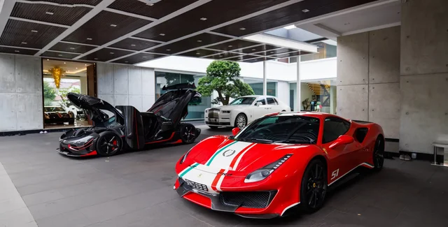 В особняке миллионера есть Pagani Huayra BC, Koenigsegg Agera RS, Ferrari 488 Pista, и очень редкий Nissan GT-R50 Italdesign. Стоимость каждого из этих авто составляет более 8 млн долларов в Сингапуре.