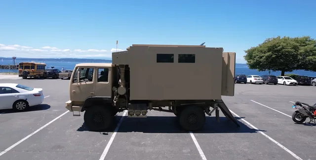 В США создали практичный дом на колесах на базе военного грузовика Stewart & Stevenson M1079 1998 года выпуска. Он способен справиться с самым суровым бездорожьем. Видео опубликовали на YouTube-канале Tiny House Giant Journey.