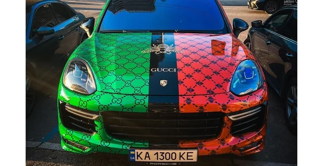 Кроссовер Porsche Cayenne Дениса Поветкина ранее неоднократно видели на улицах Киева. Автомобиль выделялся своей оригинальной красно-зеленой раскраской с узором и надписями Gucci.