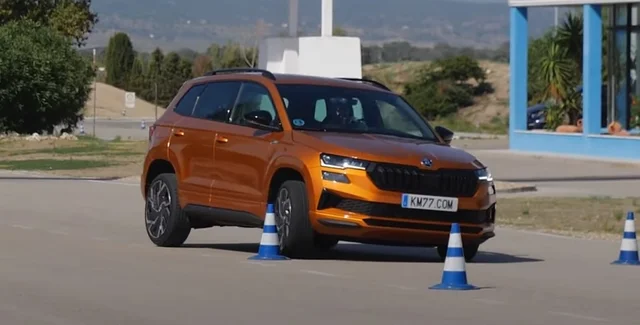 Сперва Skoda Karoq испытали в тесте на слалом. Кроссовер проехал полосу препятствий за 25,9 секунды, что является неплохим результатом. Модель оказалась быстрее Range Rover Sport и Toyota Aygo X.