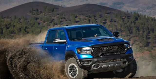 RAM 1500 TRX оснащен 6,2-литровым компрессорным V8 мощностью 702 л. с. Он способен разогнаться до 100 км/ч за 4,5 с и обладает отличной проходимостью.