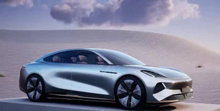 Китайский электромобиль отличается элегантным обтекаемым силуэтом с выраженным "носом", покатой крышей и тоненькими диодными фарами и фонарями. Задние двери открываются против движения.