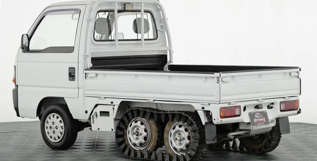 Honda Acty Crawler — небольшой шестиколесный грузовик длиной всего 3,3 м. Для бездорожья автомобиль получил съемные гусеницы.