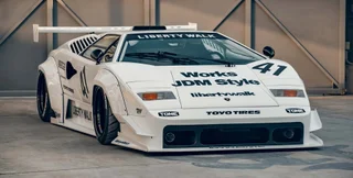 Суперкар Lamborghini Countach занижен и получил выраженный обвес. Сзади появились огромное антикрыло и диффузор. Кроме того, автомобиль оснастили кованными дисками Rohana Forged с широкими шинами Toyo – для их установки понадобились расширители колесных арок.