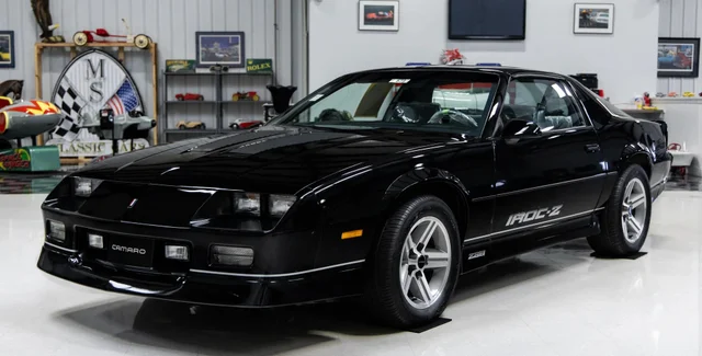 Chevrolet Camaro относится к заряженной модификации IROC-Z с 5,0-литровым карбюраторным V8 мощностью 190 л. с. и 5-ступенчатой механической КПП. Разгон до 100 км/ч занимает 8 секунд.