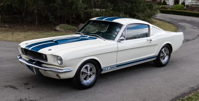 Shelby GT350 1965 года — лимитированная заряженная версия Ford Mustang с 306-сильным V8 и сниженной массой. Спорткар способен разогнаться до сотни за 6,5 с и развить 217 км/ч.
