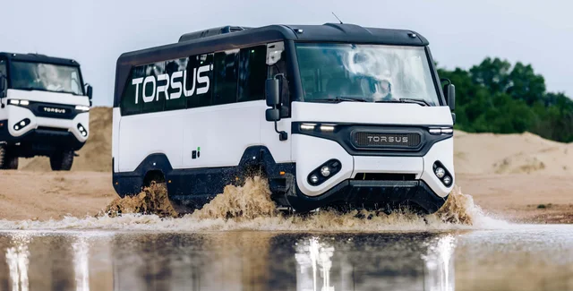 Новый Torsus Praetorian TG3 (именно так назвали обновленную модель) не изменился внешне. Полноприводный автобус достигает 8,7 м в длину, а его клиренс составляет 350 мм. Кузов изготовлен из композитных материалов, поэтому он не боится коррозии. Установлены и внедорожные шины.