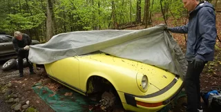 Porsche 911 Targa обнаружили в штате Нью-Йорк. Спорткар прикрыли чехлами, которые уберегли кузов от непогоды. Благодаря им автомобиль довольно неплохо сохранился после 20 лет простоя под открытым небом.