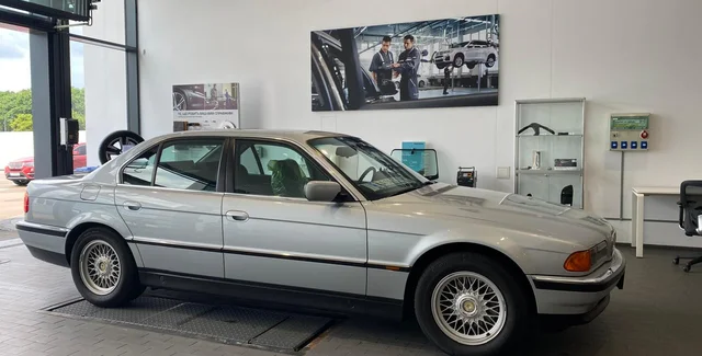 BMW 740i E38 в отличном состоянии и богато оснащен — есть электроприводы кресел с памятью, двухзонный климат-контроль и центральный дисплей. Под капотом установлен 286-сильный V8.
