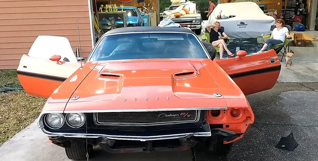 В 1970 году изготовили всего 287 купе Dodge Challenger R/T Hemi. Сейчас они очень ценятся коллекционерами и их стоимость достигает 500 000 долларов. Конкретно этот Dodge Challenger уже выкупили и отремонтировали.