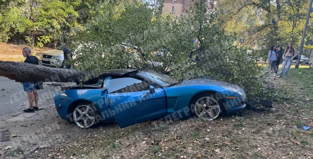 Сообщается, что ДТП имело место на улице Елены Телиги в Шевченковском районе. В повороте водитель Chevrolet Corvette не справился с управлением и авто занесло. Спорткар врезался в дерево, которое завалилось ему на крышу.