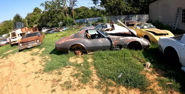 Ретроавто десятилетиями ржавеют во дворе дома в Техасе. В коллекции обнаружили сразу семь винтажных Chevrolet Corvette, а также Ford Mustang, Chevrolet Camaro и Mercury Cougar.