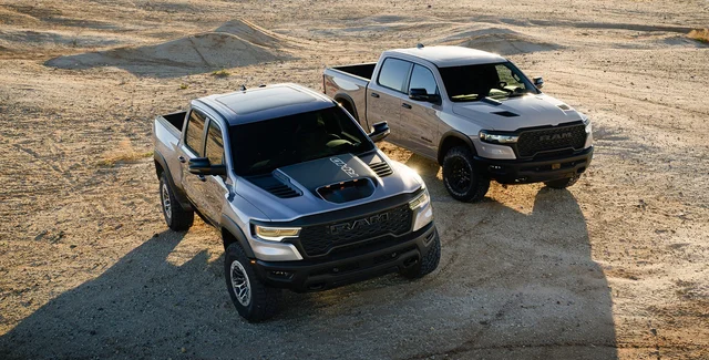 Самый мощный мотор ставят на экстремальный Ram 1500 RHO с увеличенным клиренсом, усиленной подвеской и внедорожными шинами. Грузоподъемность Ram 1500 составляет тонну, также пикап способен буксировать 3,5-тонный прицеп.