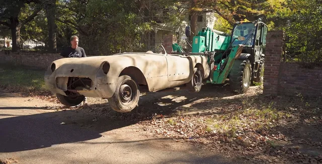 С завода Chevrolet Corvette C1 выехал со 155-сильной шестеркой, однако двигателя у него нет. По авто видно, что его начали реставрировать и мотор сняли. Установлено, что спорткар не выезжал на дороги примерно 45 лет.