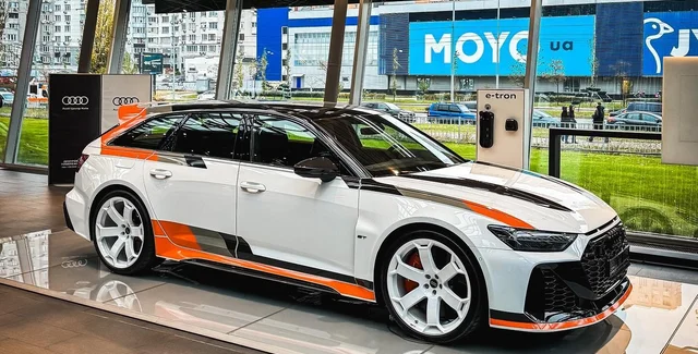 В Киев привезли новый Audi RS6 Avant GT. Самый быстрый серийный универсал в мире сфотографировали в одном из столичных автосалонов Audi, а его фотографии опубликовали на странице t.o.p.c.a.r.s_ua в Instagram.