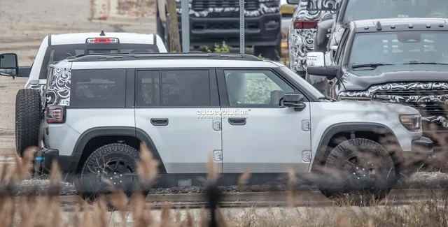 Электромобили Jeep Recon фактически не прикрыты камуфляжем. Внешне внедорожник почти не отличаются от предсерийного концепта. У него классический угловатый дизайн с высоким капотом, короткими свесами кузова и вертикальными задними стойками. Установлены 17-дюймовые внедорожные шины Nexen Roadian ATX.