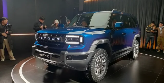 Первенцем в семействе стал новый Jetour Zongheng G700. Это большой рамный внедорожник длиной 5,1 м с брутальным рубленым дизайном. У него широкая решетка радиатора, крупные фары и раздутые крылья.