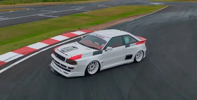 Купе Audi S2 занизили, а его крылья серьезно расширили. Также появились новый обвес, спойлер и диффузор. Белые колесные диски "обули" в низкопрофильную резину. Расцветка выдержана в стилистике гоночных Audi 80-х и 90-х.