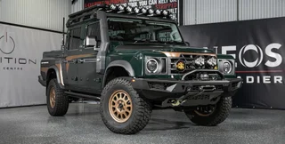Для доработки выбрали пикап Ineos Greandier Quartermaster, который уже есть и в Украине. Он получил усиленный передний бампер с дугами, лебедку и внедорожные шины. Кроме того, появилась дополнительная оптика, а боковины украсили графикой. В кузове установили запасное колесо, а на крыше — багажник.
