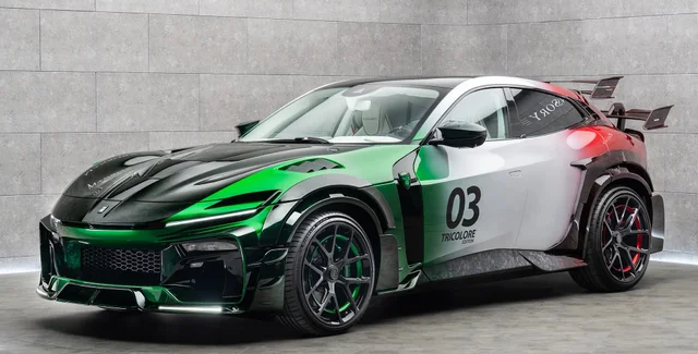В Mansory и раньше выполняли тюнинг Ferrari Purosangue, однако новый проект получился более экстравагантным. Его покрасили в цвета итальянского флага, а сзади установили сразу два антикрыла и четыре широкие выхлопные трубы.
