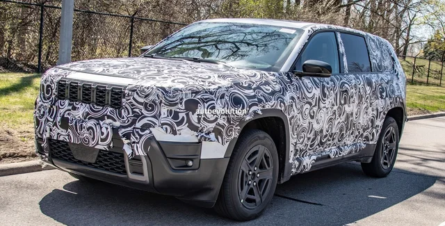 На фото также видно фирменную решетку радиатора Jeep, расширенные крылья и фонари в стойках крыши. Также видно, что внедорожник заметно больше предшественника.