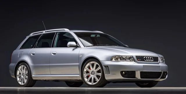 Audi RS4 Avant первого поколения — ценная раритетная модель. С 1999 по 2002 год изготовили всего 6030 авто. Заряженный вариант Audi A4 предлагался исключительно в кузове универсал с обвесом, расширенными крыльями, массивными бамперами и 18-дюймовыми дисками.