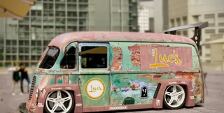 Кузов International-Harvester Metro установили на среднемоторное шасси Chevrolet Corvette. Кроме того, фургон занизили, расширили его колесные арки, добавили обвес и огромное антикрыло.