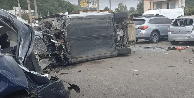 В Полтаве Tesla въехала в стоянку и повредила семь автомобилей (фото, видео)
