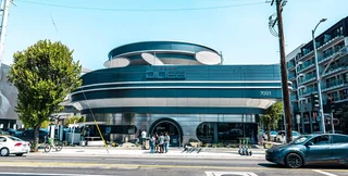 В другой рецензии отметили, что ресторан расположен на бульваре Санта-Моника, главной улице в районе Голливуд в Лос-Анджелесе. Он вмещает более 250 посетителей на первом этаже и крыше трехэтажного здания. С двух сторон здание окружено 30 станциями V4 Supercharger, а с двух других — городскими улицами. На углу ресторан соединен с другой станцией Supercharger, расположенной на соседнем участке, где также есть 50 зарядных станций. Парковки без зарядки нет, но журналистов на других электромобилях, не Tesla, развернули на входе.