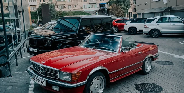 В Киеве сфотографировали кабриолет Mercedes-Benz 560 SL 80-х годов. Знаменитое спортивное авто имеет раритетный пакет от AMG.