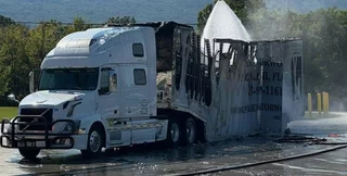 Грузовик ехал по трассе, когда из его полуприцепа с суперкарами пошел дым — об этом начал сигнализировать водитель другого авто. Автовоз остановился на стоянке и его водитель сразу вызвал пожарных на место ДТП.