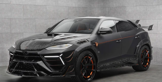 Конечно же, тюнинг Lamborghini Urus от Mansory сделал дизайн значительно агрессивнее. Кроссовер получил карбоновые капот, обвес, декор и сразу два антикрыла. Появились и оранжевые вставки. Также установлены 24-дюймовые кованые диски FC.5 с низкопрофильными шинами размером 295/30 R24 спереди и 355/25 R24 сзади.