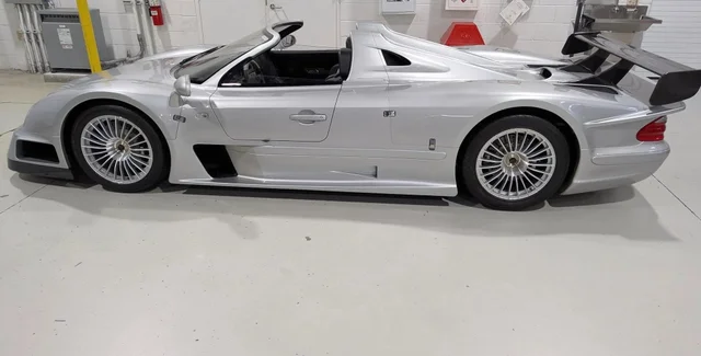 Суперкар Mercedes CLK-GTR Roadster является серийной версией гоночного авто. Карбоновый кабриолет оснащен 6,9-литровым V12 мощностью 612 л. с. и 6-ступенчатой секвентальной КПП. Разгон до 100 км/ч занимает 3,9 с, а максимальная скорость превышает 320 км/ч.