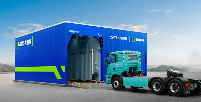 Электрические грузовики смогут заезжать на станции CATL, где им за считанные минуты заменят батарею. Таким образом, можно быстро продолжить движение.