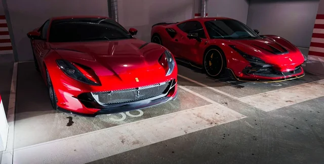На столичном паркинге сфотографировали Ferrari F12 Superfast и тюнингованный F8 Tributo. Фотографии опубликовали на странице drive.luxury в Instagram.