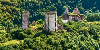Полторы круглые готические зубчатые башни — это все, что осталось от великолепного дворца, стоявшего в живописном межгорье Залещицкого района Тернопольской области. Сейчас в этой долине, носящей название урочище Червоне, нет никакого поселения, поэтому замок относят то к Нагорянам, то к Ныркову — двум близлежащим селам. Но так было не всегда.