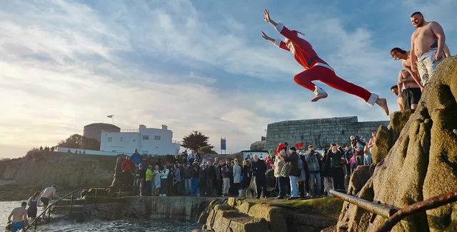 Дублинские экстремалы предпочитают сигать в освежающую морскую воду прямо с обрыва. При этом они надевают костюмы Санты и с веселым улюлюканьем прыгают в не очень гостеприимные воды