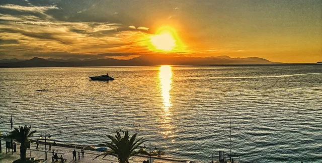 Кстати, учтите, что к вечеру в Афинах на улицах удобно располагаются ко сну десятки иммигрантов. Так что вполне разумно, отгуляв день, вечером вернуться обратно в тихие Лутраки. Да и закат здесь прекрасен.