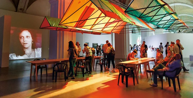 Об этом работа Юлии Полуниной-Бут Trans — серия фотоколлажей, где художница "перенесла" в свой родной Симферополь известные крымские достопримечательности. Об этом же — инсталляция в виде палатки, воссоздающая атмосферу ялтинской набережной.