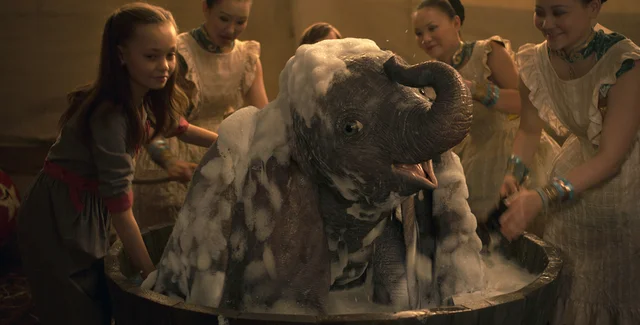 Если бы не наличие людей в кадре, "Дамбо" вполне бы мог сойти за мультфильм