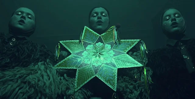 Помните мюзикл 2001 года "Вечера на хуторе близ Диканьки"? Тот, где Вакула — Олег Скрипка, Оксана — Ани Лорак, Черт — Филипп Киркоров, а композитор — Константин Меладзе? Так вот, группа Kazka эту работу 19-летней давности пересмотрела, вдохновилась и сделала то же самое, только без Лорак и Киркорова. А именно — кавер на финальную песню "Ой, дай Бог" и видеоряд к нему. Сюжета у клипа как такового нет, лишь песни и наигрыши в мистическом свете зеленого неона. Из рождественского антуража — девичье трио в овечьих тулупах с Вифлеемской звездой в руках. Ну и сама колядка, записанная в селе Грузьке Киевской области.