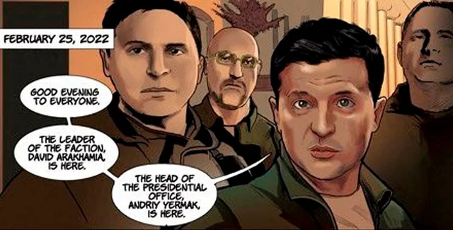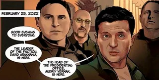 "Кто он? Что им движет? Почему Владимир Зеленский — подходящий лидер для Украины в данный момент?" — задается вопросами соавтор комикса Майкл Фризелл.
